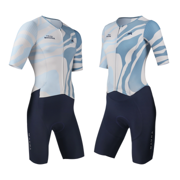 This is what Team Mauna athletes will race in and represent all season long. The Ourea Pro PR Trisuit for the Community Team and the V.21 Trisuit for the Elite Team—two expressions of the same identity, built for different levels of performance.