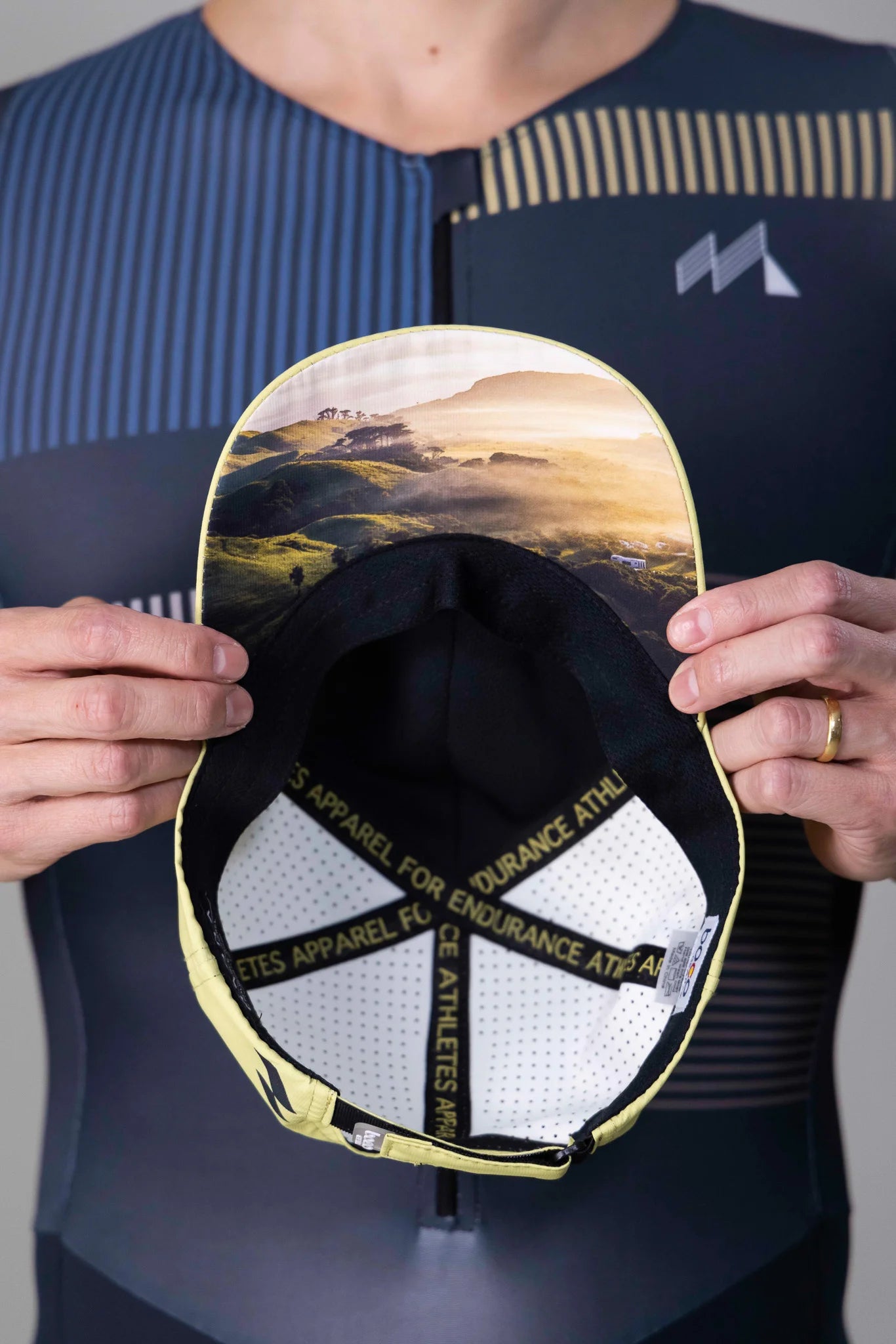 Soft polyester mesh wicking sweatband on the inside to help move sweat away from your head keeping you focused on the trail or road.